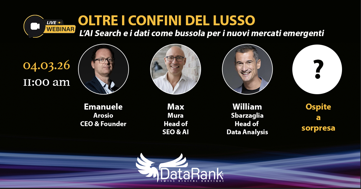 Scopri come l’AI Search e l’analisi dei dati stanno ridefinendo le strategie di espansione internazionale dei brand del lusso. Durante il webinar esploreremo casi concreti, scenari emergenti e framework operativi per individuare nuove opportunità di mercato, anticipare la domanda e costruire un vantaggio competitivo reale nei mercati globali.